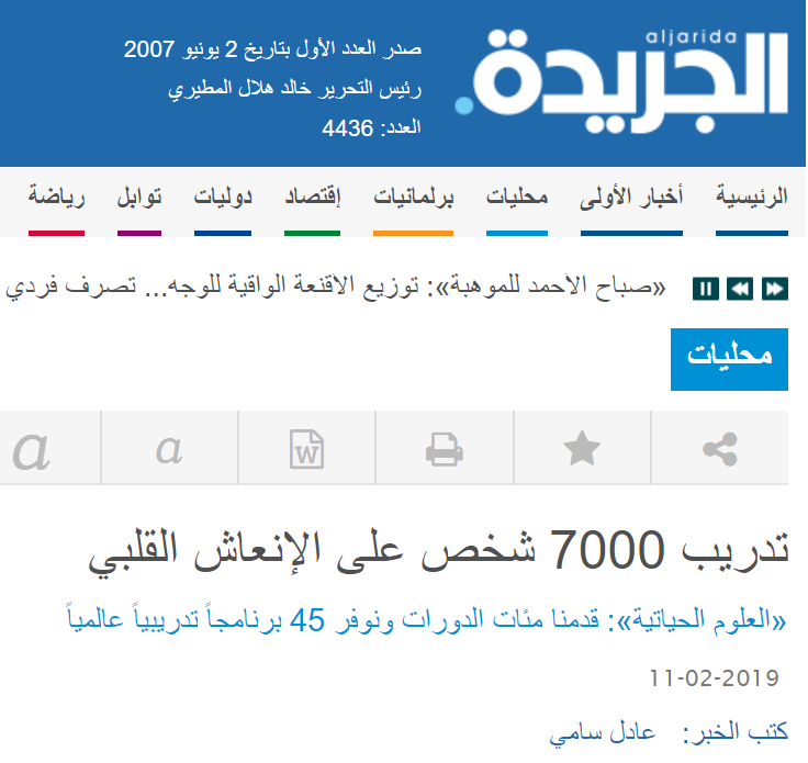 أشاد الرئيس التنفيذي لأكاديمية العلوم الحياتية محمد ناهس العنزي بالقرارين الوزاريين اللذين أصدرهما وزير الصحة د. باسل الصباح ، والخاصين بضرورة حصول جميع الأطباء البشريين والأسنان وأفراد الهيئة التمريضية والفنيين في جميع التخصصات على دورات الإنعاش القلبي والرئوي (ACLS ) و ( BLS ) من مراكز التدريب المعتمدة من جمعية القلب الأمريكية.